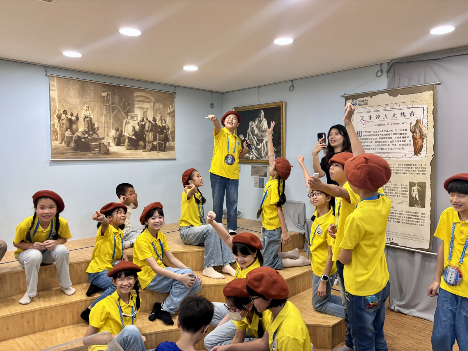 巡迴展的第一站來到新北市盟主學校——南勢國小,並於2025/9/24舉辦開幕典禮。當天活動吸引了地方仕紳及家長熱情參與,現場氣氛熱烈活潑。雖然學校是第一次承辦《游於藝》計畫,但在展場佈置上非常用心:動線規劃、地線標示、請勿觸摸標牌都貼心擺放在畫作旁,讓孩子們彷彿置身真正的美術館中。期待透過這次文藝復興展,讓孩子們不僅能欣賞經典藝術作品,感受文藝復興時期的創意與才華,也能從中激發創造力與學習熱情,同時增添校園的美感氛圍。