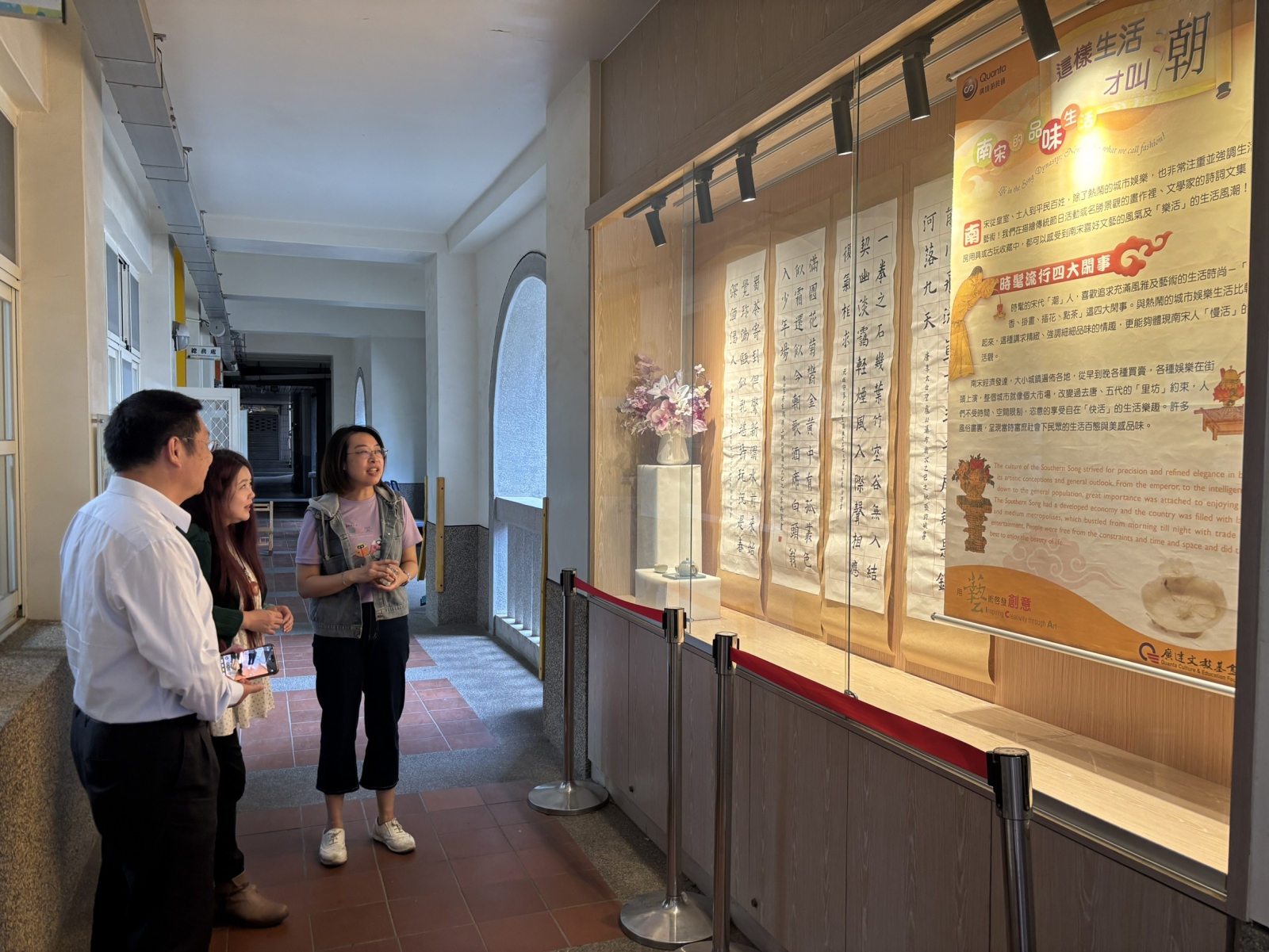 今年金門縣巡迴展以《文藝紹興—宋潮好好玩》為主題,聚焦南宋的創新精神,體驗「以簡為尚」的文化理念。透過展覽,學生不僅能欣賞宋代藝術的精緻與趣味,期待也能將傳統藝術與金門在地文化、校園生活進行連結,讓傳統藝術不只是歷史回顧,更成為日常生活中的美感。