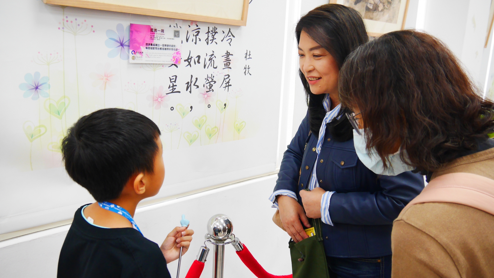 ▲小尖兵帶著興奮又專注的心情介紹作品,徐繪珈執行長與來賓們也耐心聆聽,展現藝術教育最美的互動畫面。