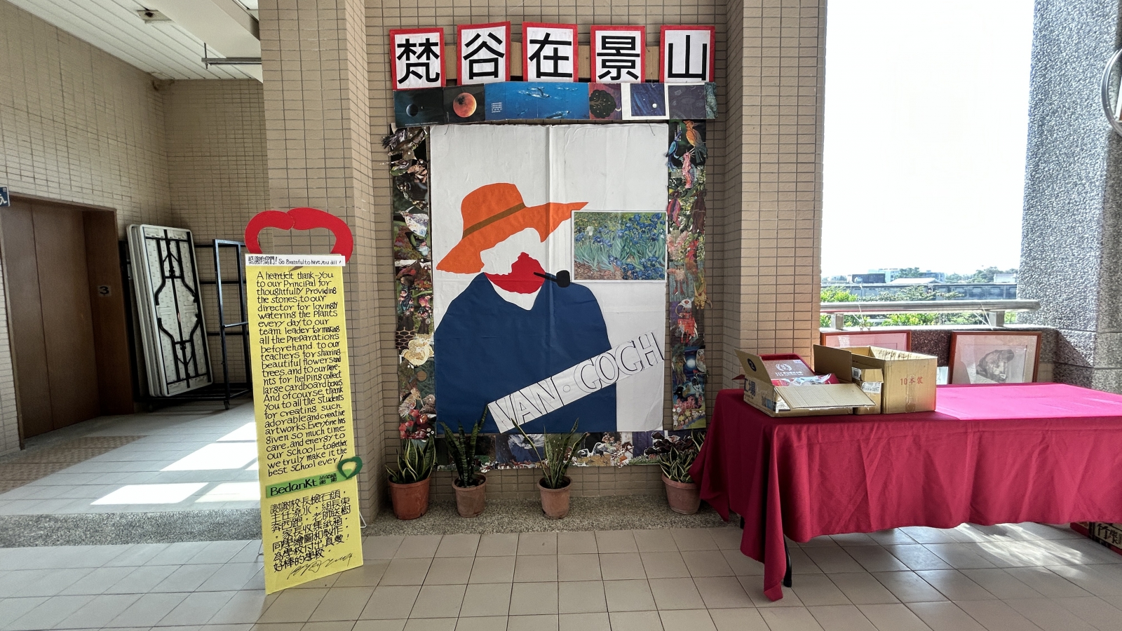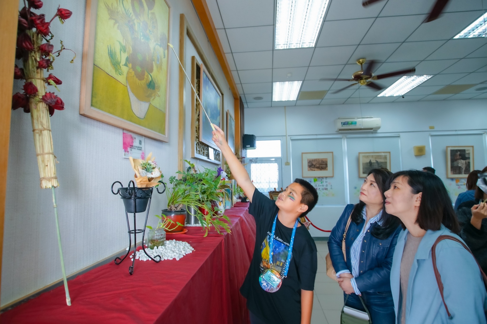 此外,景山國小的老師與同學們在佈展上亦展現豐富巧思,不僅陳列了學生們細膩的繪畫成果,更搭配梵谷相關場景與可愛小人物裝飾,另外裝飾在農閒時間種植的向日葵進行裝飾,讓來賓在參觀藝術之餘,擁有更豐富、多層次的觀展體驗。