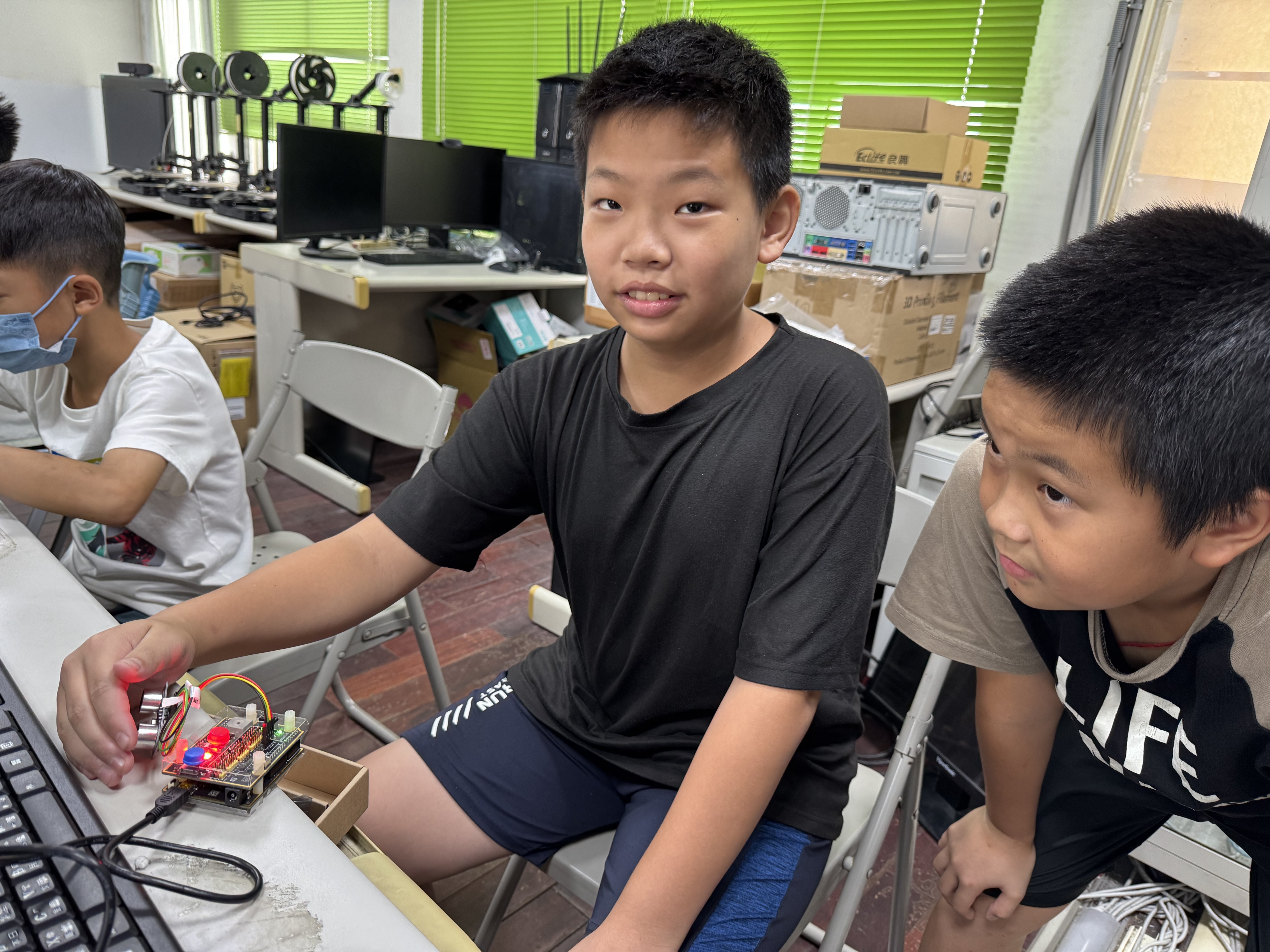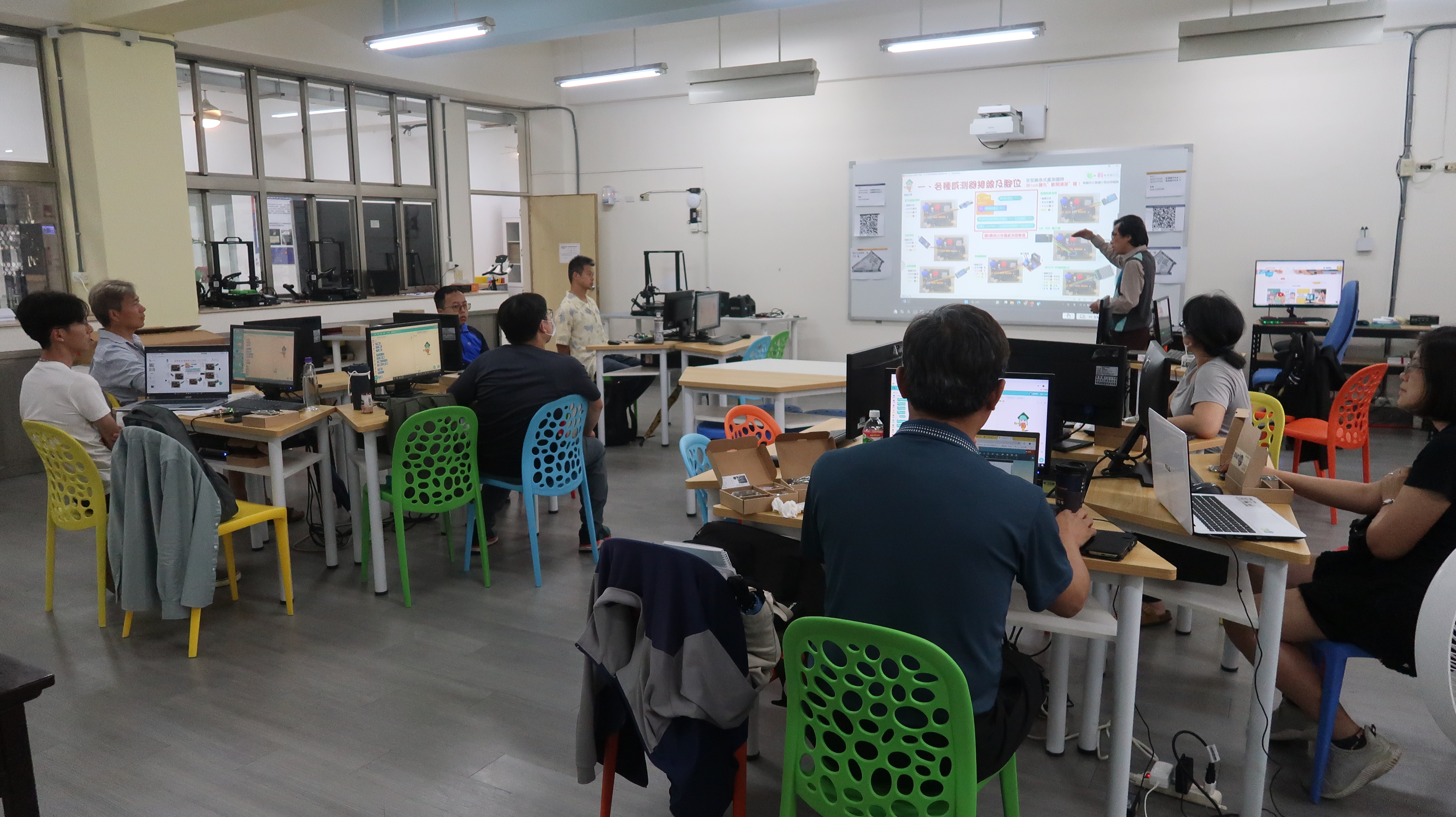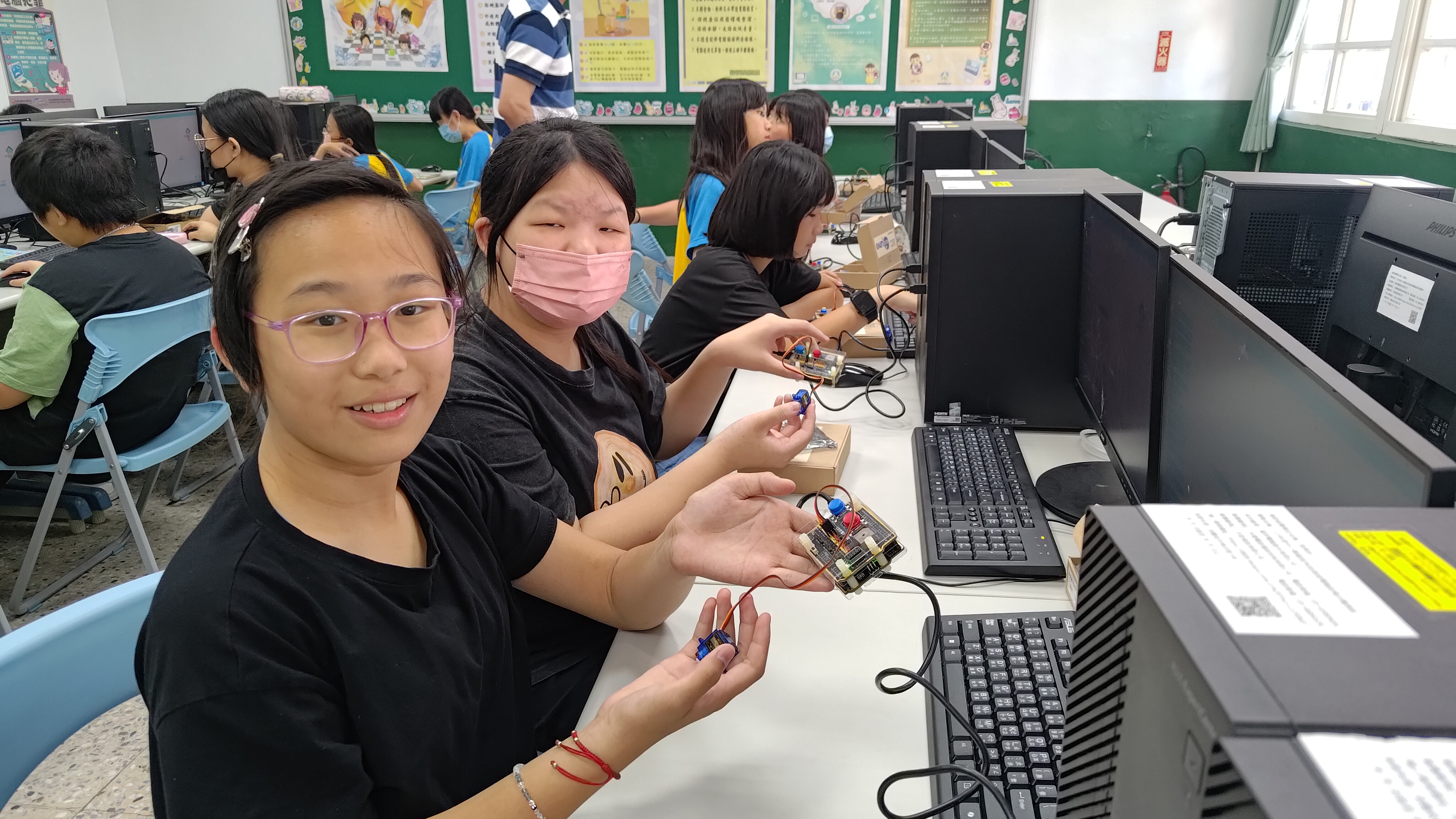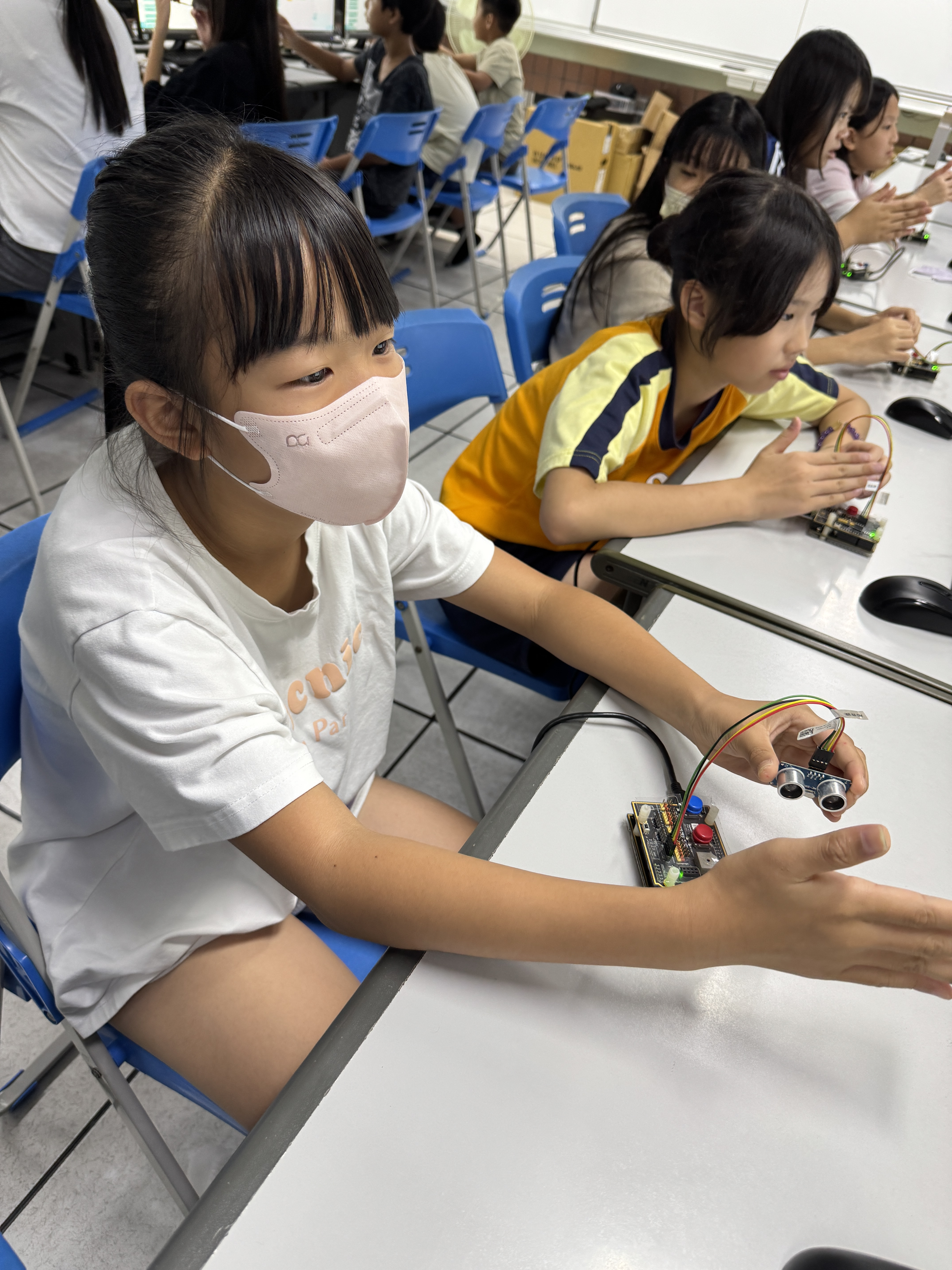 今年,我們持續將物聯網(IoT)與工智慧(AI)技術融入課程,結合「設計思考」方法,讓學生從生活情境出發,培養解決問題的能力。教師透過三大專業工作坊(感測器應用、IoT連線、設計思考),不僅學習操作,更能設計在地化課程,讓科技教育更貼近孩子的世界。