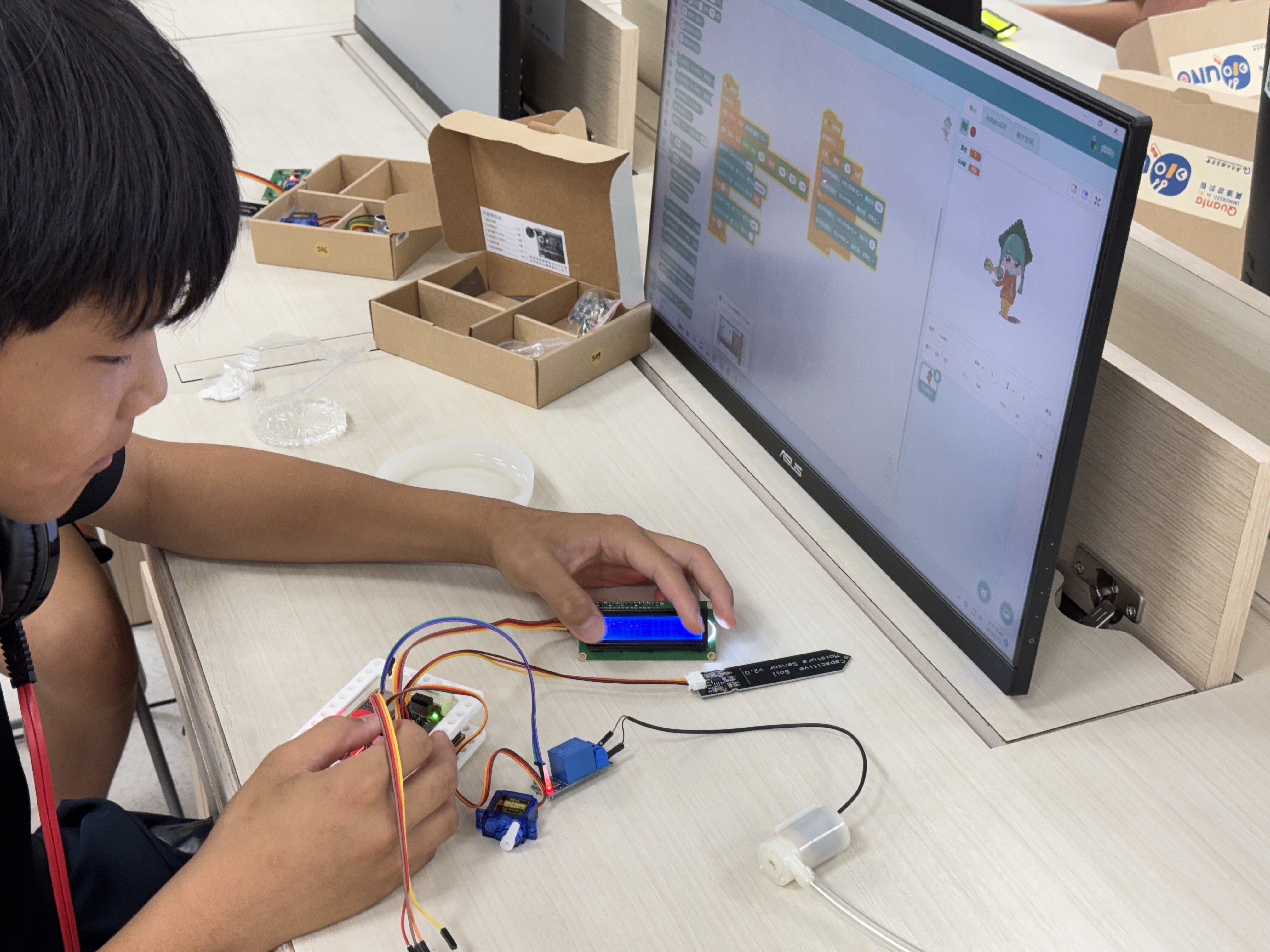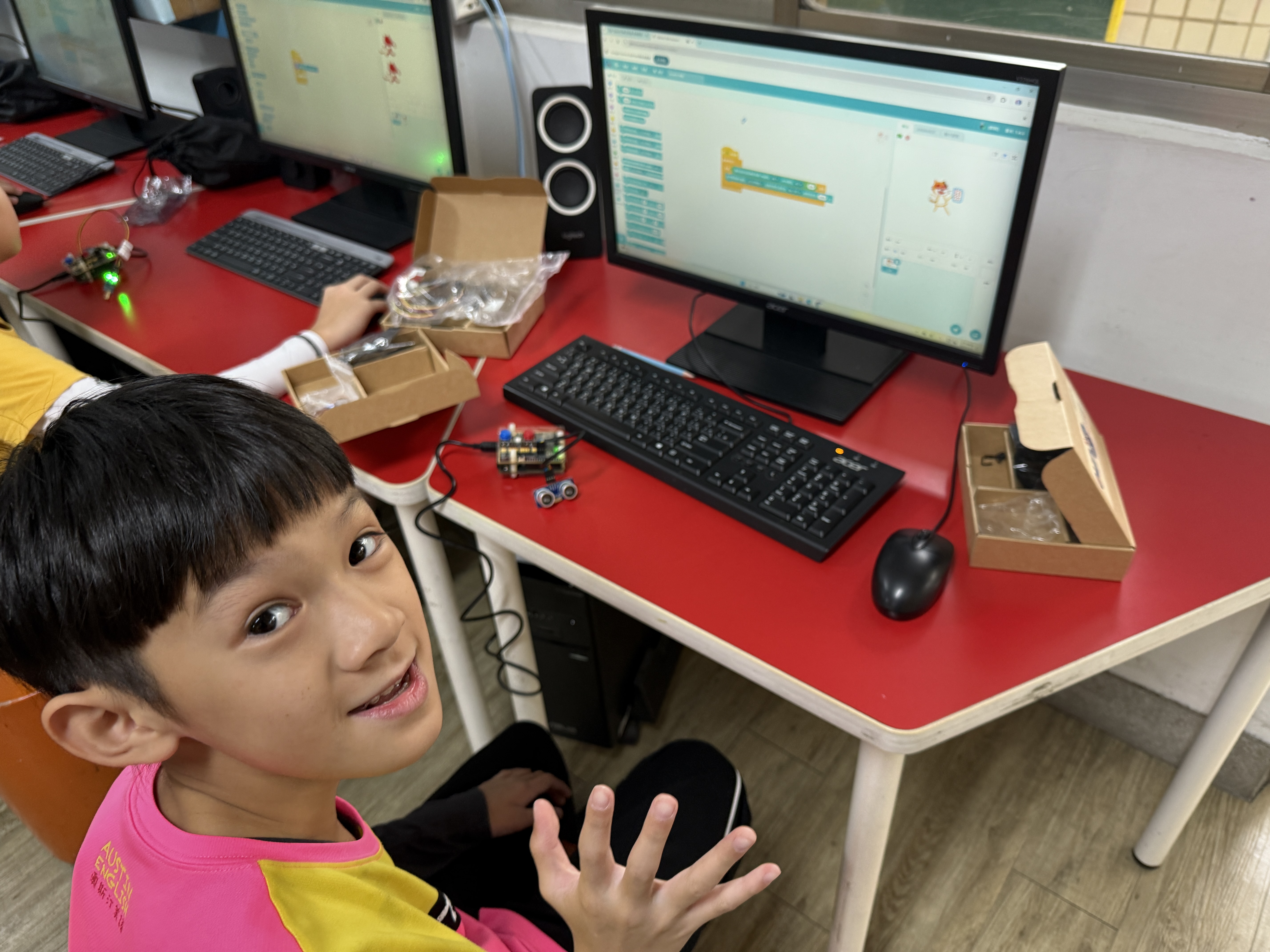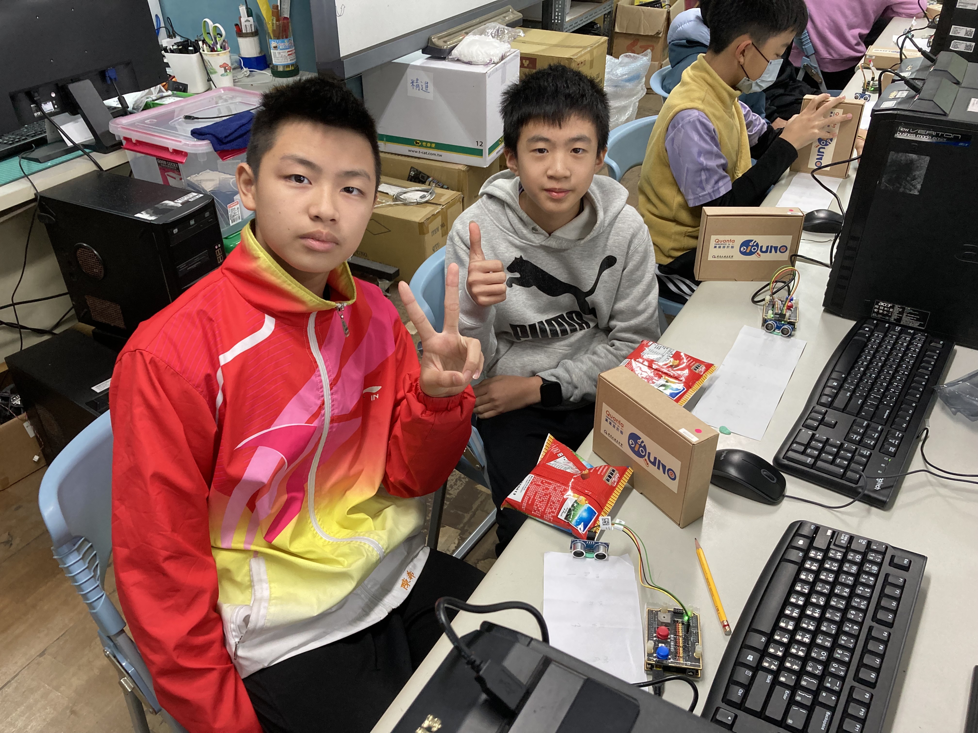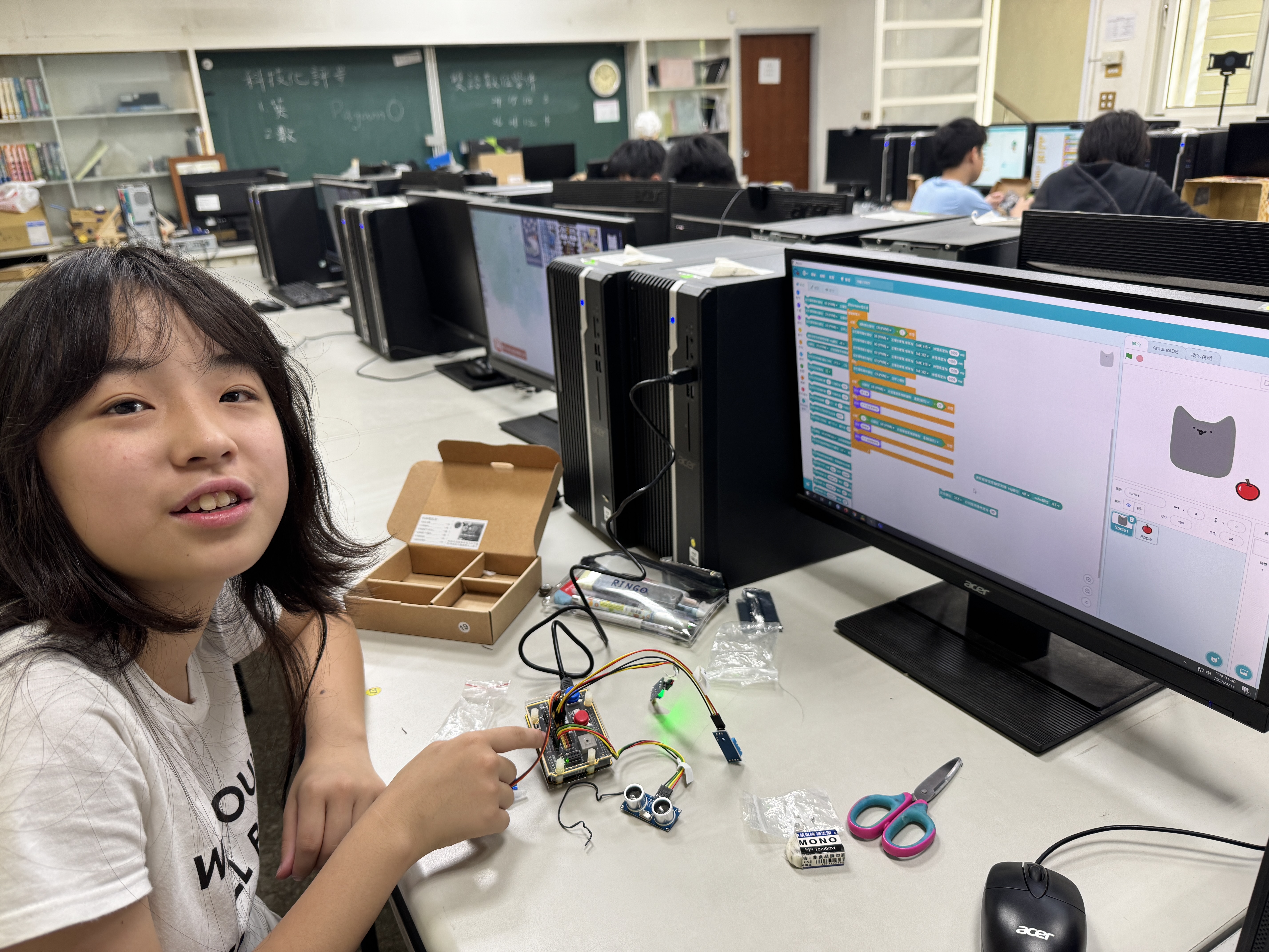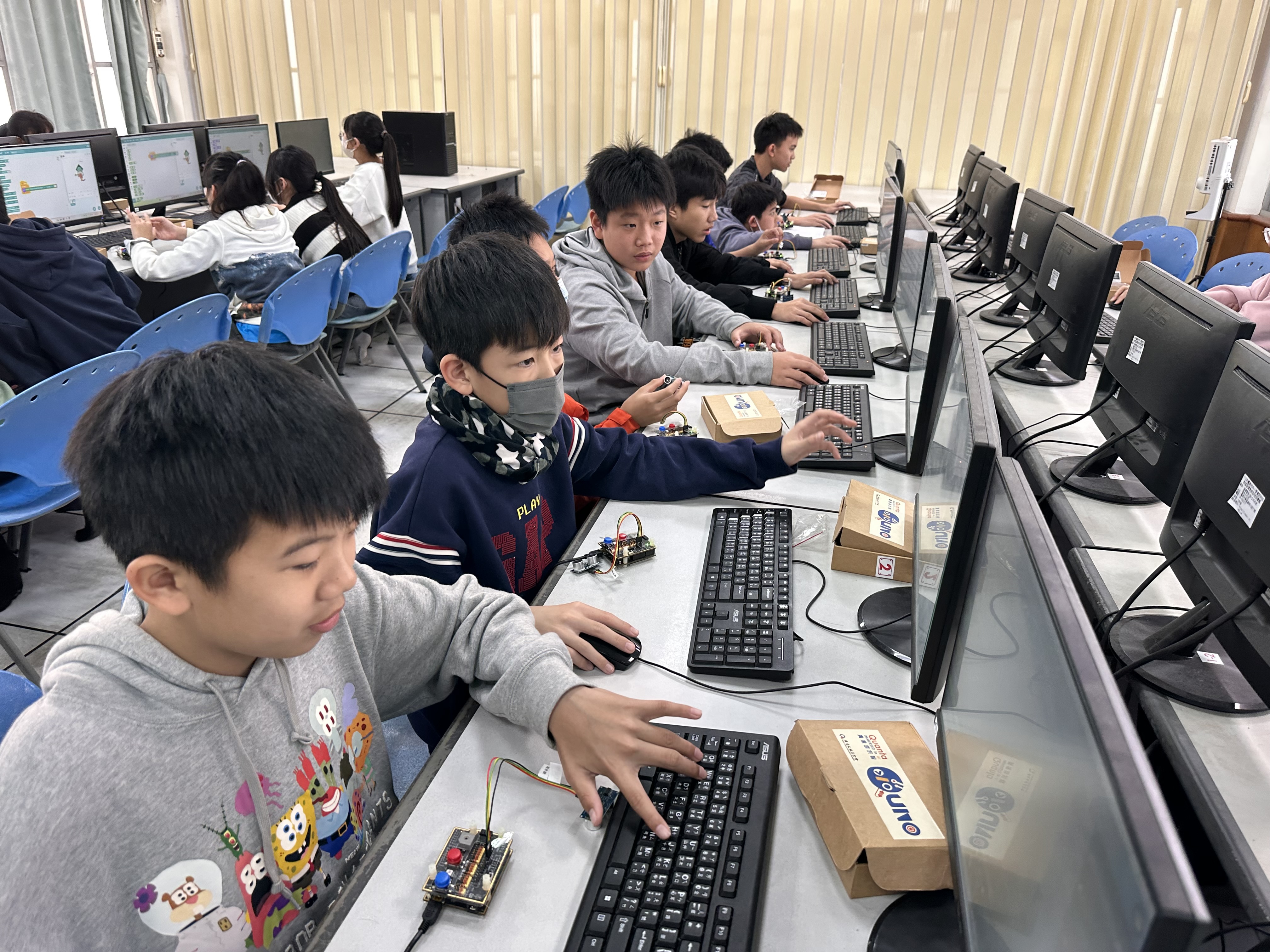 今年,我們持續將物聯網(IoT)與工智慧(AI)技術融入課程,結合「設計思考」方法,讓學生從生活情境出發,培養解決問題的能力。教師透過三大專業工作坊(感測器應用、IoT連線、設計思考),不僅學習操作,更能設計在地化課程,讓科技教育更貼近孩子的世界。
