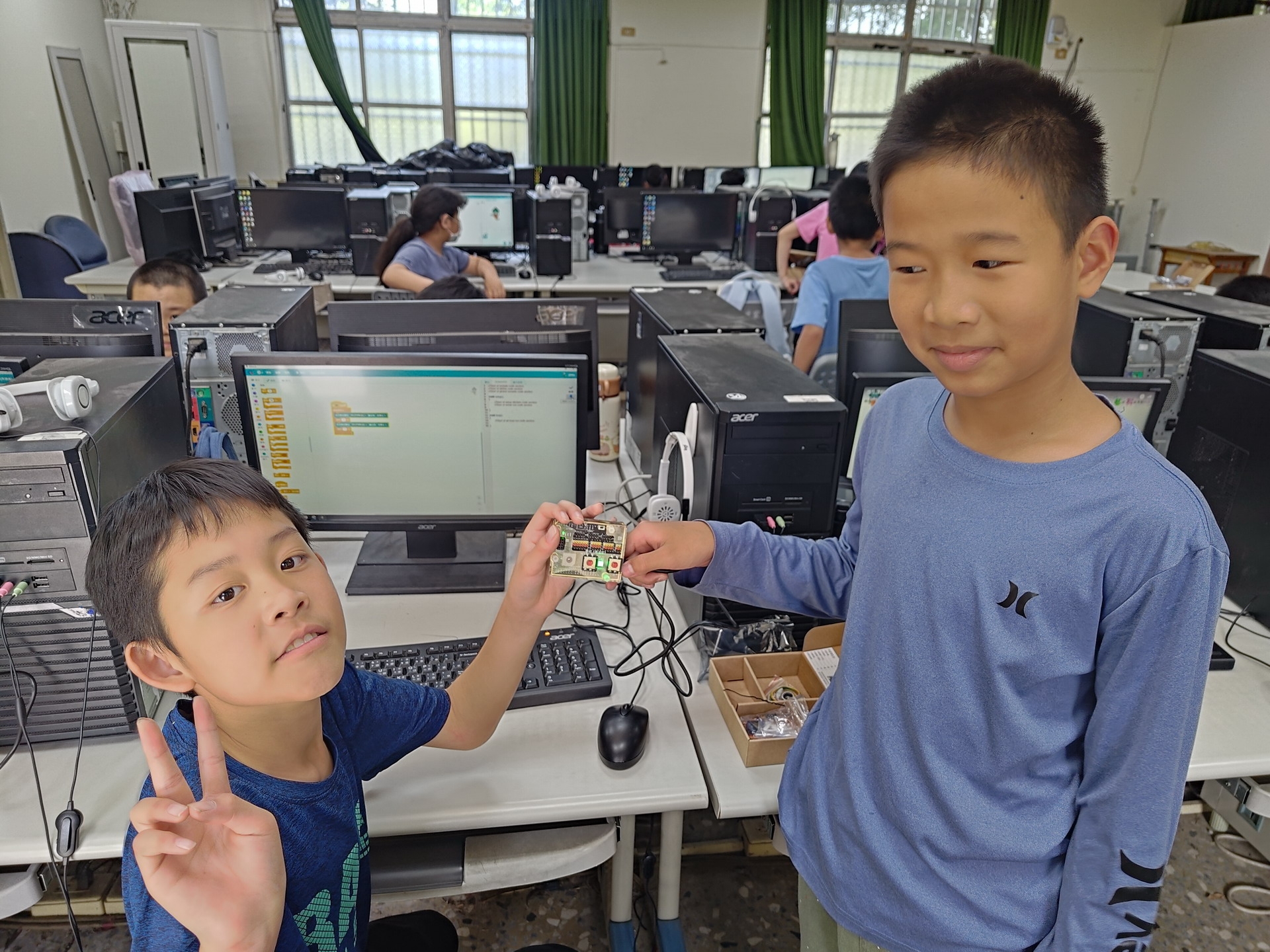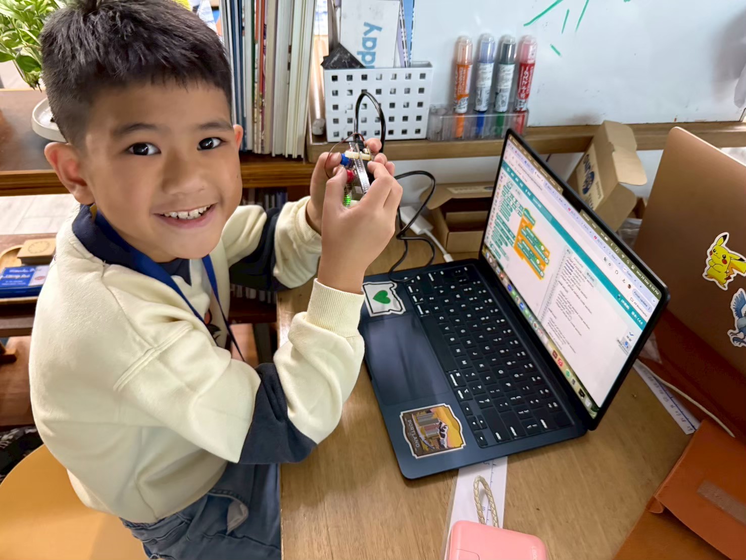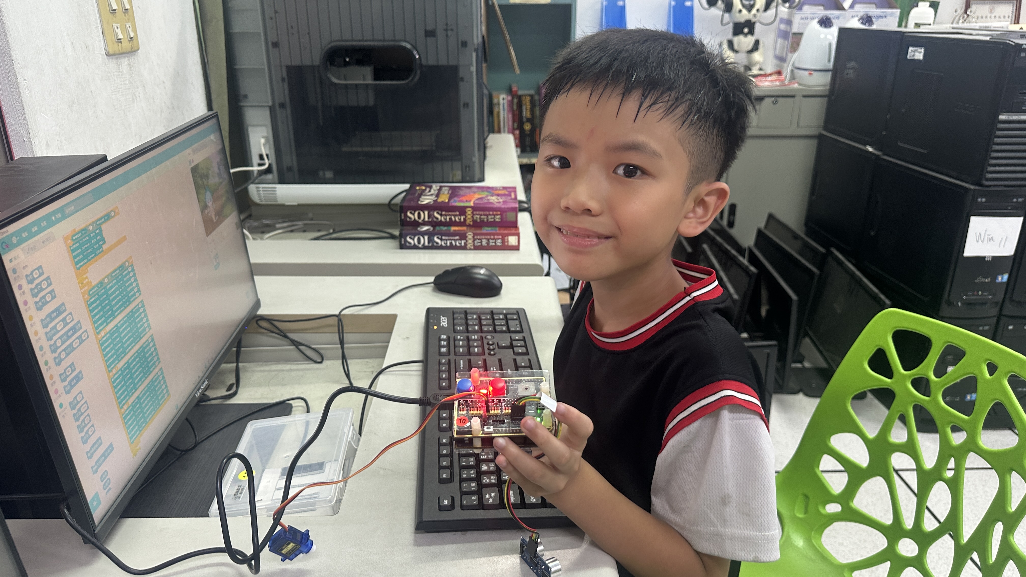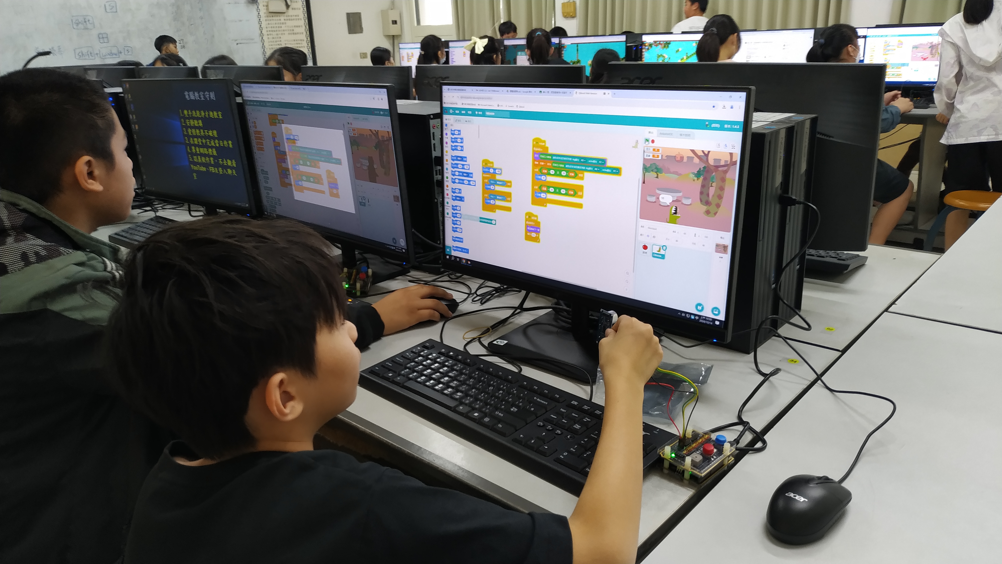 今年,我們持續將物聯網(IoT)與工智慧(AI)技術融入課程,結合「設計思考」方法,讓學生從生活情境出發,培養解決問題的能力。教師透過三大專業工作坊(感測器應用、IoT連線、設計思考),不僅學習操作,更能設計在地化課程,讓科技教育更貼近孩子的世界。
