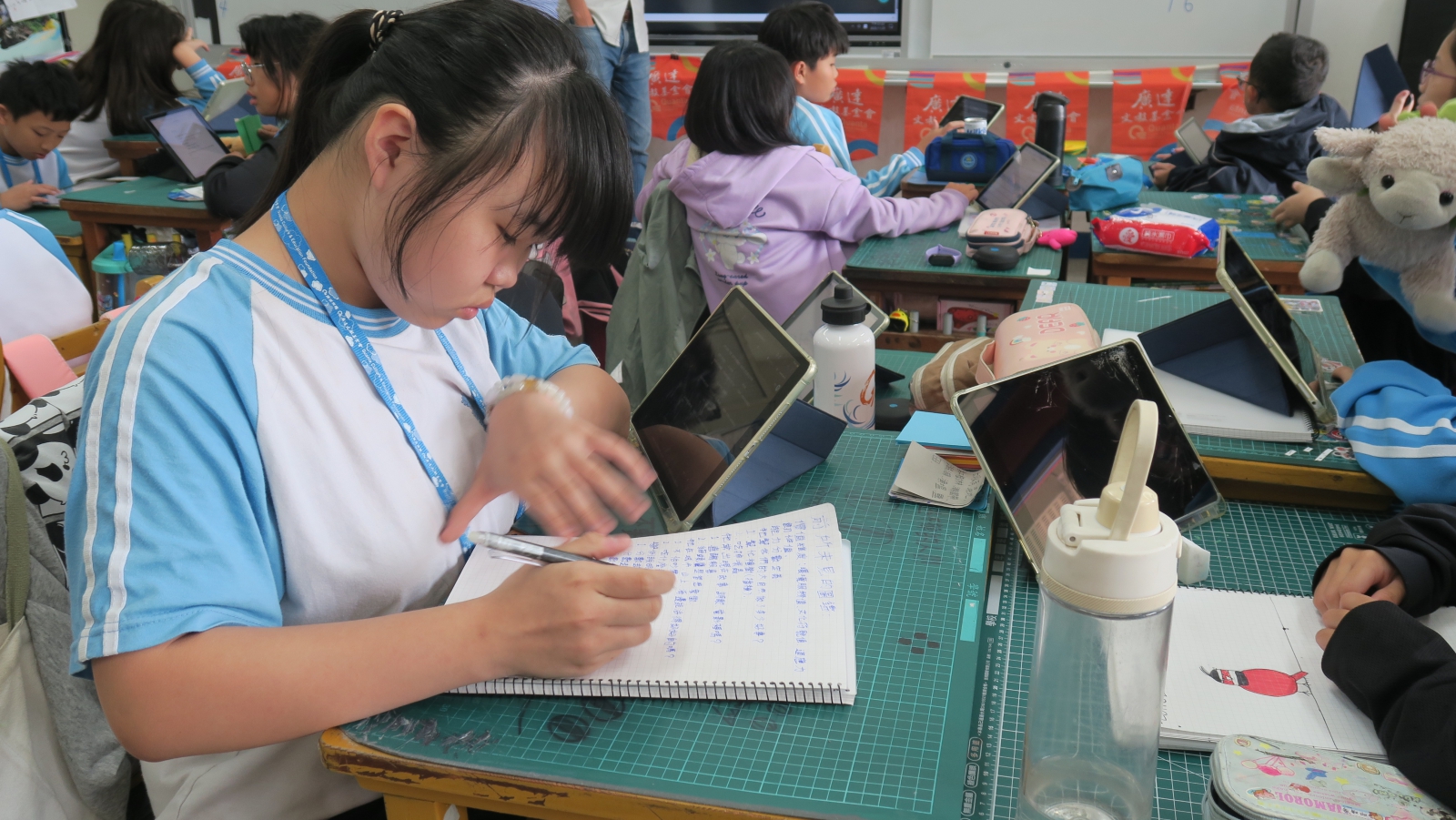 臺南市篤加小設計師從鳥類與濕地影片中觀察問題,寫下觀察線索。