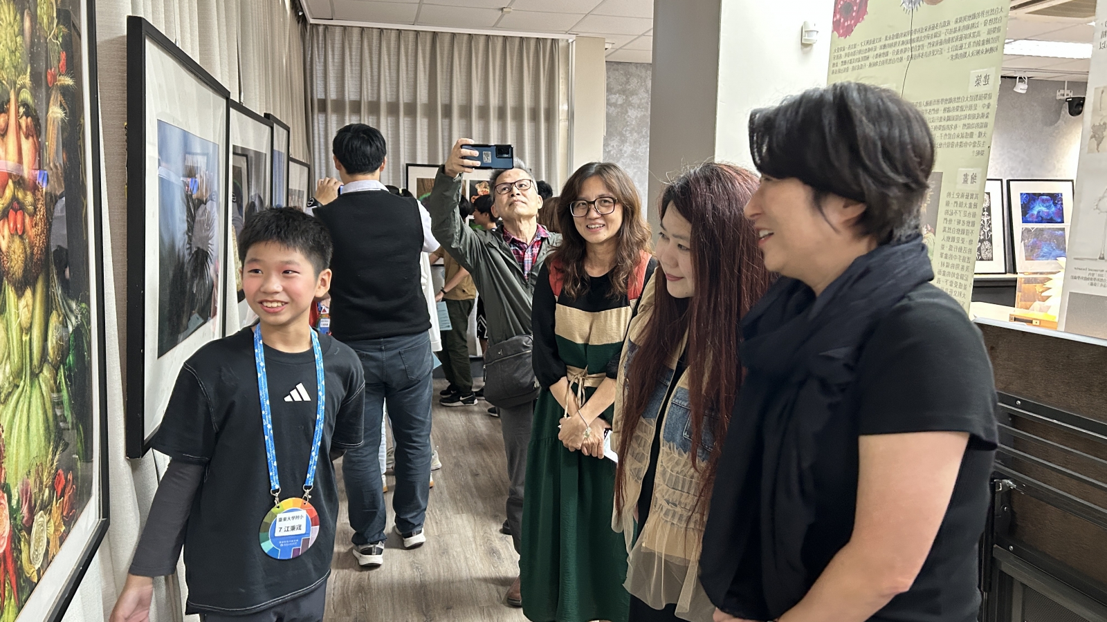 儀式結束後,饒慶鈴縣長親臨展場聆聽小尖兵導覽。小尖兵展現出扎實的準備與豐富的知識內涵,清楚說明水結晶在不同溫度下所呈現的結構差異,讓在場來賓驚豔不已。此外,小尖兵也發揮高度的想像力,將玻璃破碎的畫面形容為海洋翻湧的波浪,引導觀眾以嶄新的角度欣賞作品。在介紹〈四季之神〉時,透過畫面中的蔬果與來賓互動,一同猜測作品內容,並進一步說明其象徵意義,現場氣氛熱絡而溫馨。