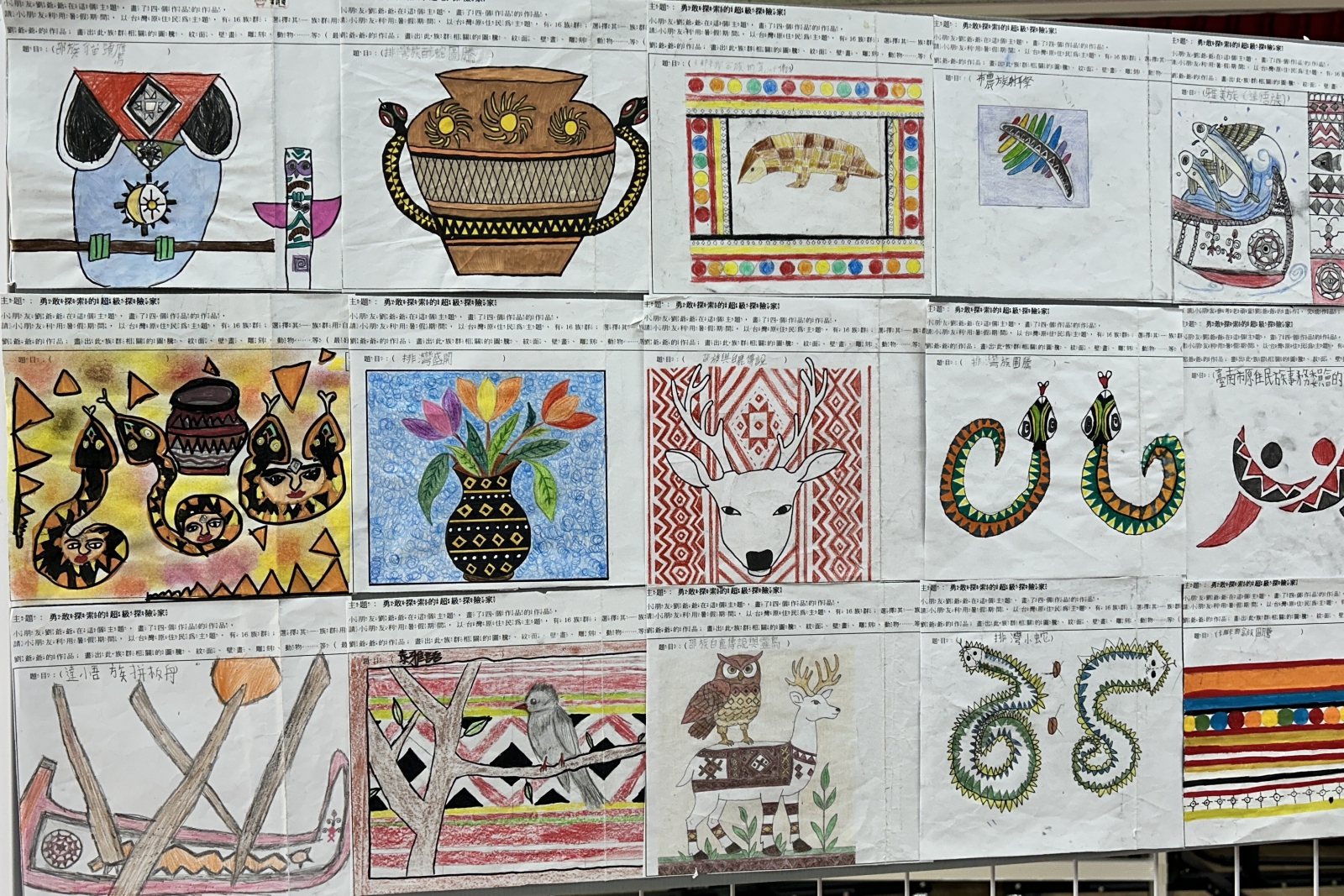 ▲學校以「跟著老頑童探險去!─ 劉其偉藝術特展」為主題,設計主題學習單,讓學生於暑假期間,可透過圖像與色彩詮釋動物意象與圖騰元素,理解藝術家創作精神的理解與個人想像。