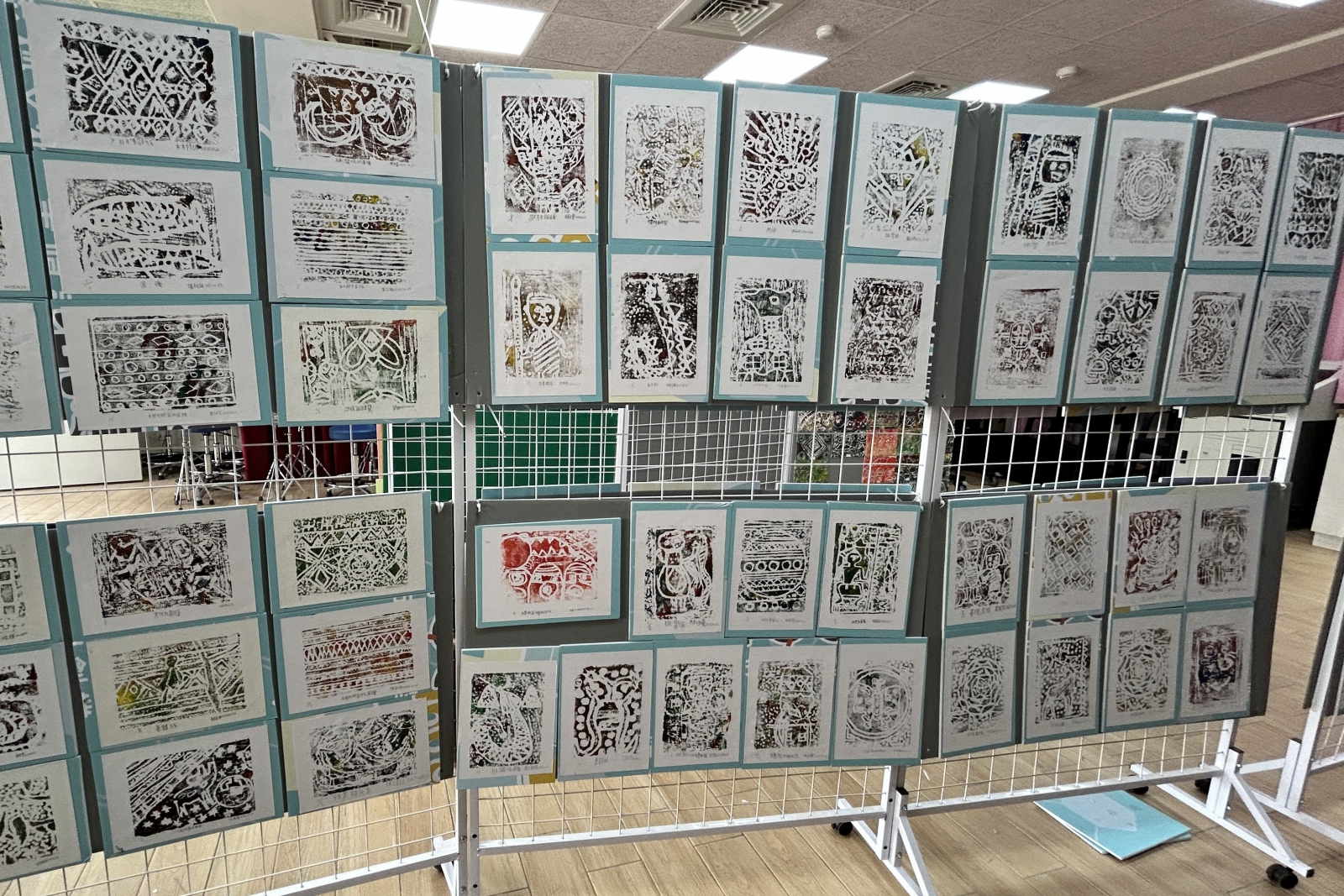 ▲藝術課程中引導學生嘗試版畫媒材,透過反覆刻畫與印製,學習構圖、節奏與圖案變化。