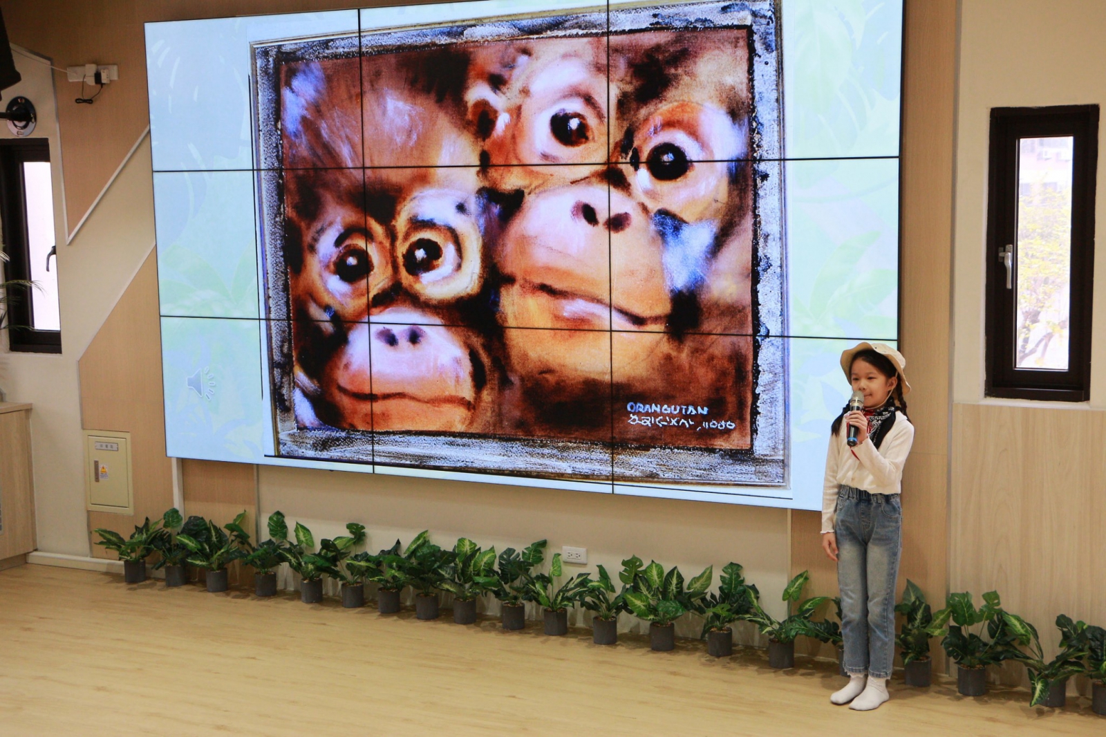 ▲藝術小尖兵代表於台上進行導覽,清楚介紹作品內容與創作背景,展現自信表達與良好的理解能力。