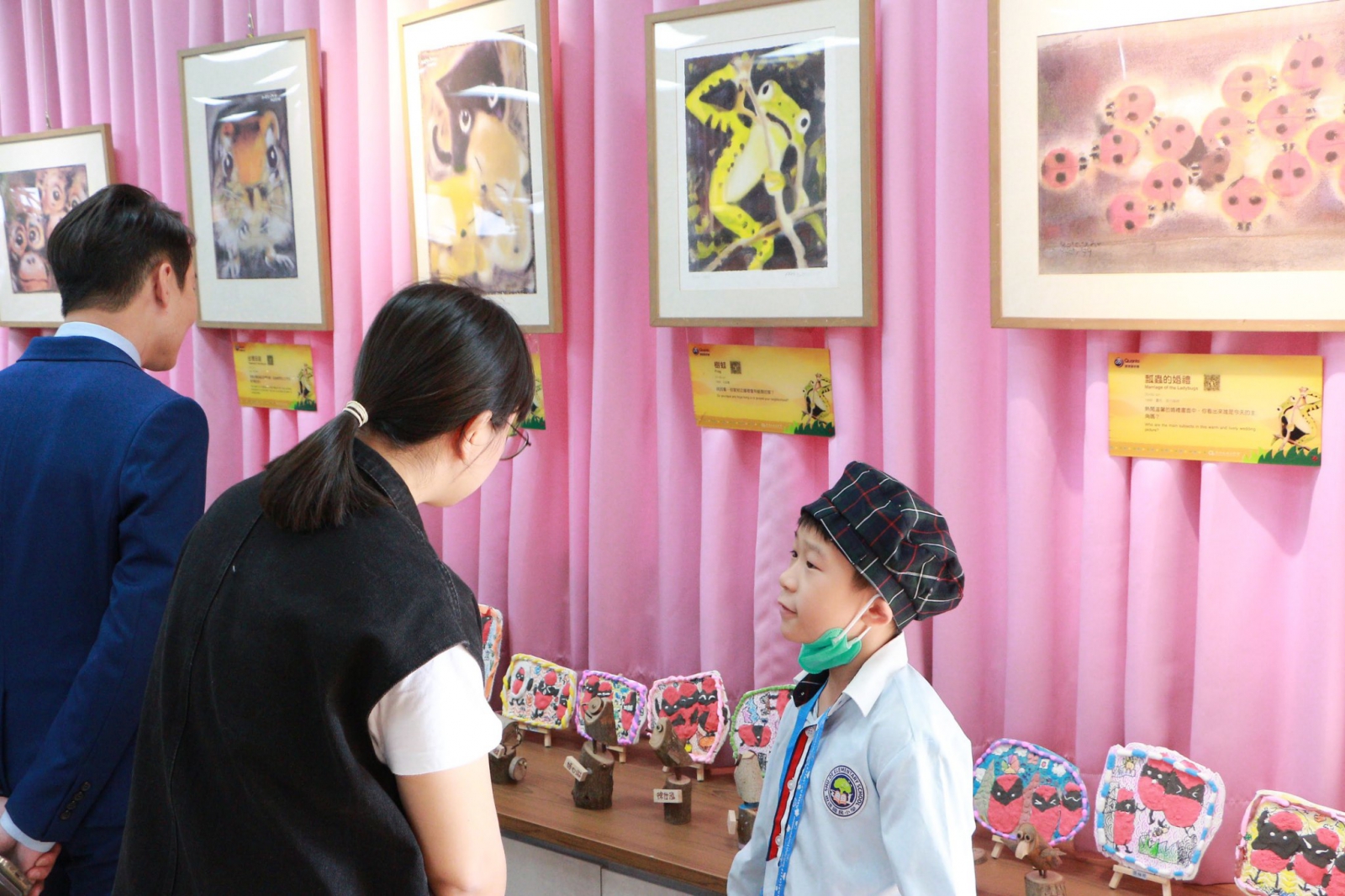 開幕活動後,由藝術小尖兵擔任導覽解說。樹德國小藝術小尖兵涵蓋二至四年級學生,透過每週固定培訓,並於晨間公開活動中為全校師生進行導覽,讓藝術欣賞成為校園中的日常風景。此次開幕導覽中,小尖兵們不僅介紹展出畫作,也分享自身與同學的創作成果與學習心得,透過清楚的表達與自信的表現,讓來賓看見藝術學習在校園中累積的深度與溫度,充分展現學生在觀察、理解與表達能力上的成長與收穫。