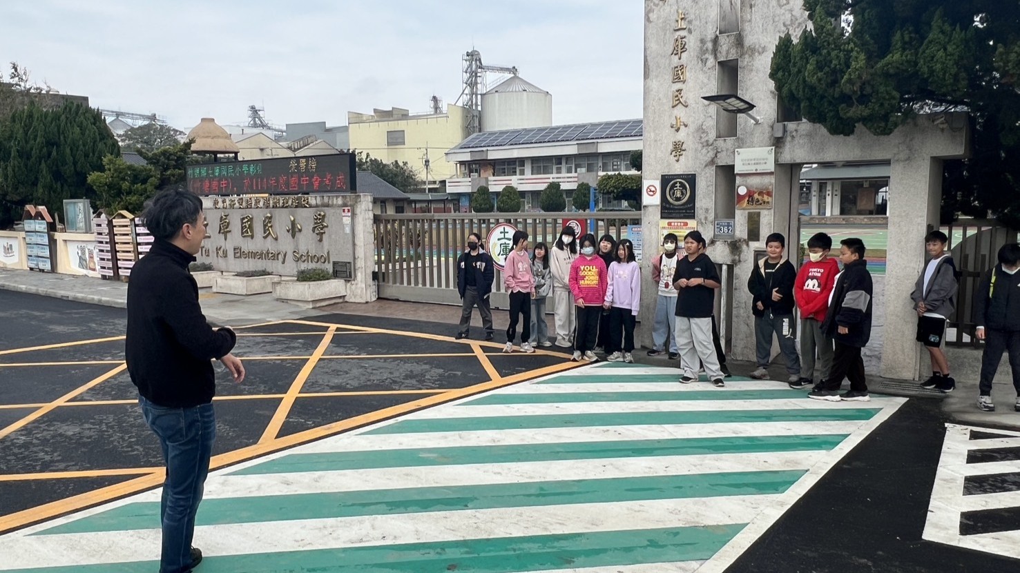 🚸土庫校門口這條通學步道,對孩子而言再熟悉不過。為了讓學生真正站在「設計師」的視角思考「以人為本」,維璋主任帶領孩子實地走踏,重新觀看每一個轉角、停等與周遭環境,思考所有用路人可能面臨的風險與需求。