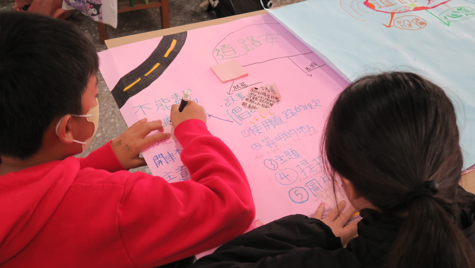 為了喚起改變,孩子們在海報紙上整理問題、提出方案,並思考可行的改變行動,將觀察轉化為正式的倡議書。