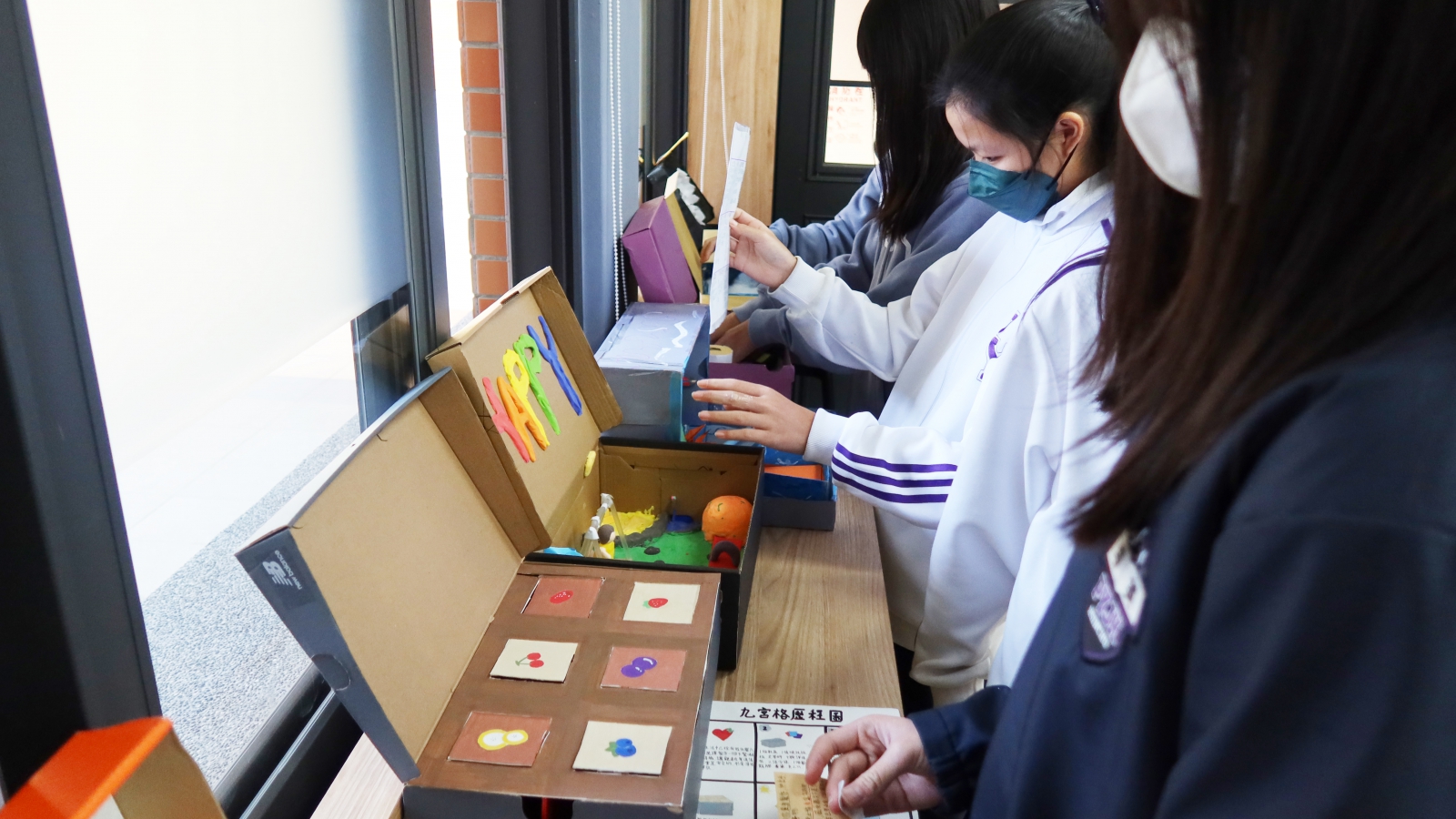 3 月 11 日成果展當天,多元教室化身點子實驗室。現場展出如結合精油與音效的《會考加油站》,及舒緩寫作壓力的《被封印的天才》等裝置。學生手持「通行證」進行互評,完整經歷了 DBL(設計本位學習)中「原型嘗試」與「迭代優化」的專業歷程。