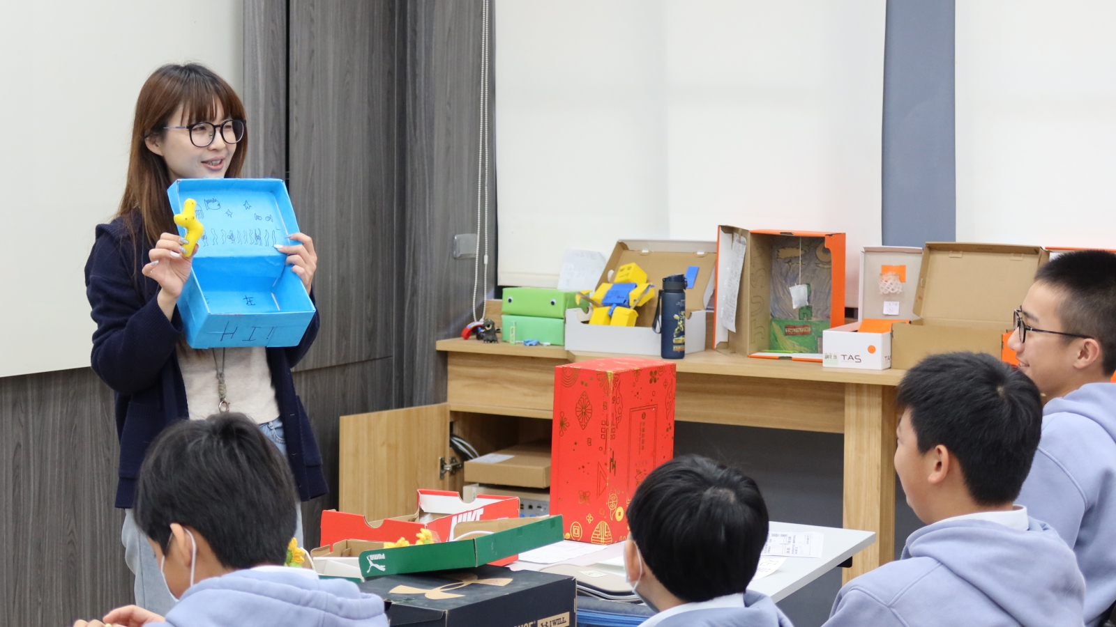 學生化身「共感療韌系統設計師」,展開為期半年的設計思考旅程。任務一透過「移情地圖」偵查痛點,結合 AI 音樂工具讓抽象情緒具象化;任務二則進入「五感系統設計」,老師巧思設計「任務充電站」,引導學生從他人視角回歸「自我主軸」,透過視、聽、嗅、味、觸為同儕打造專屬禮物。這不僅是設計練習,更是接納自我、溫柔支持他人的學習歷程。