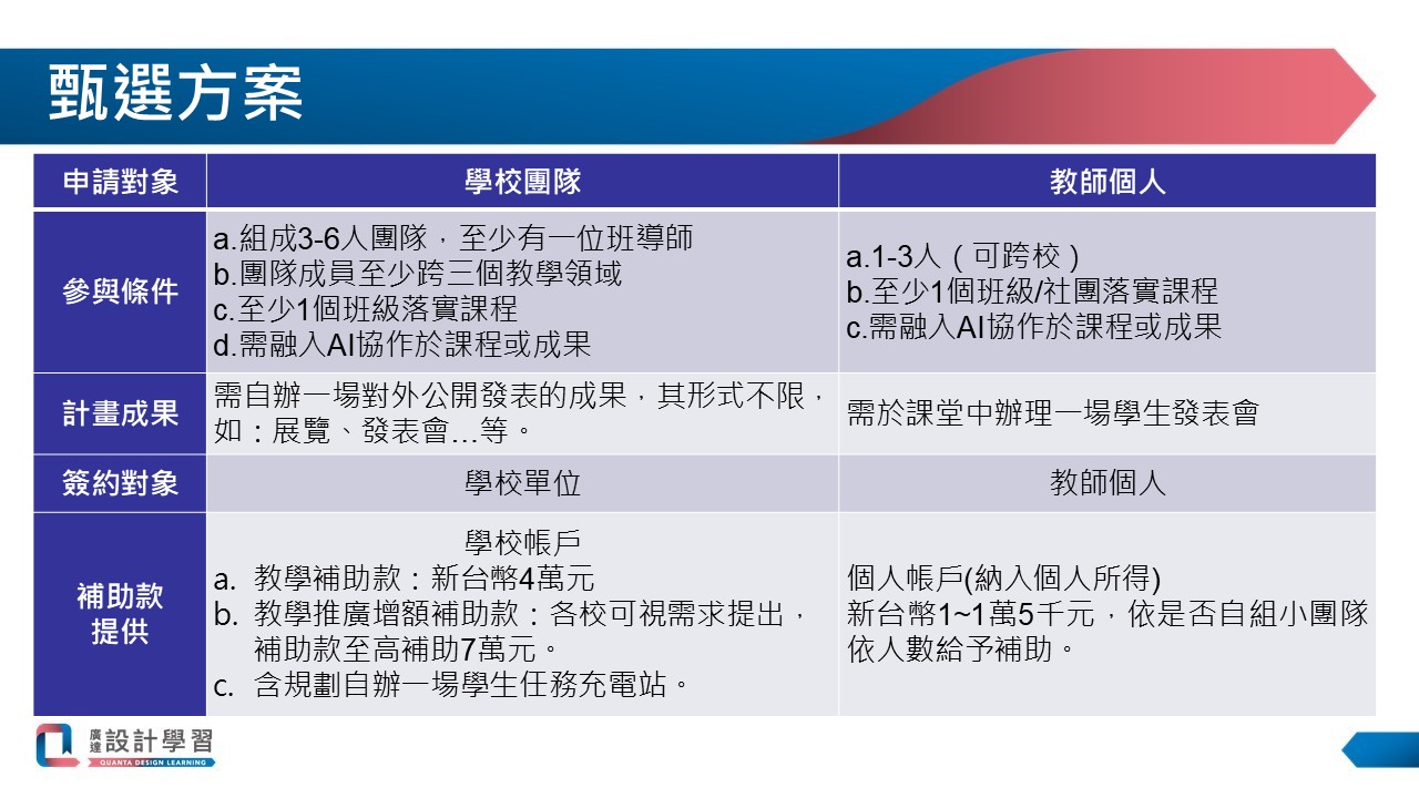 申請資格:全台灣國小、國中,學校單位或教師個人。每校限提一案。